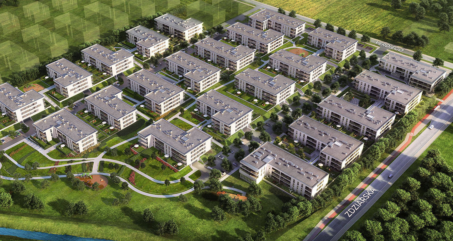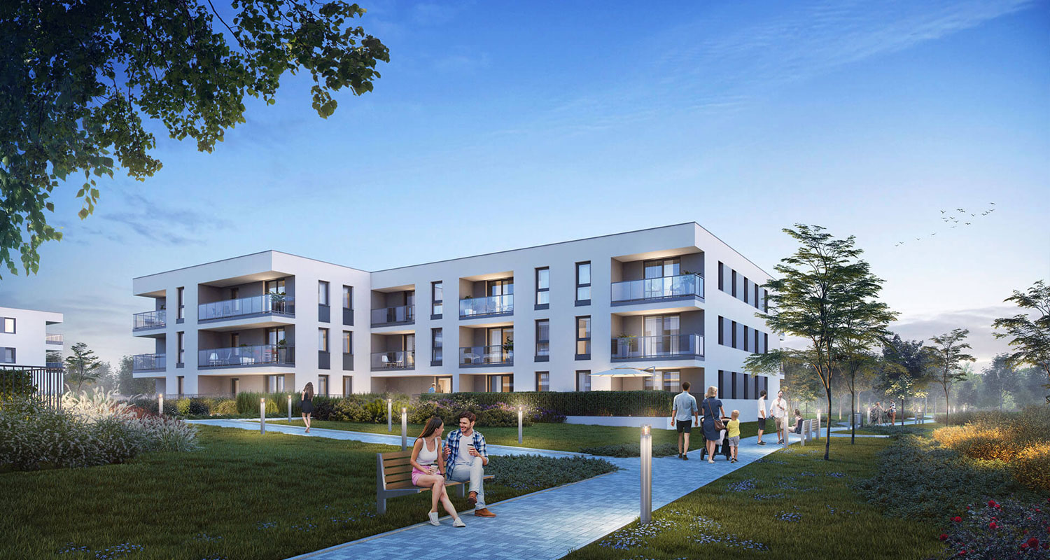 Kompleks nowoczesnych budynków wielorodzinnych oferujący nowe mieszkania 1, 2, 3 pokojowe o metrażu od 30m² do 63m² zaprojektowano w taki sposób, aby jego mieszkańcy mogli cieszyć się życiem w kameralnym klimacie blisko natruy dzięki dużym przestrzeniom zieleni na terenie osiedla. Efekt ten zapewnia niska zabudowa nieruchomości, przemyślany rozkład lokali mieszkaniowych, a także przestronne korytarze i klatki schodowe. Przyjemną, nieco podmiejską atmosferę zapewnia jedna z najbardziej zielonych dzielnic Warszawy, Białołęka. To tutaj nowe mieszkania cieszą się coraz większą popularnością wśród młodych i żyjących aktywnie osób poszukujących swej zielonej oazy w wielkim mieście.